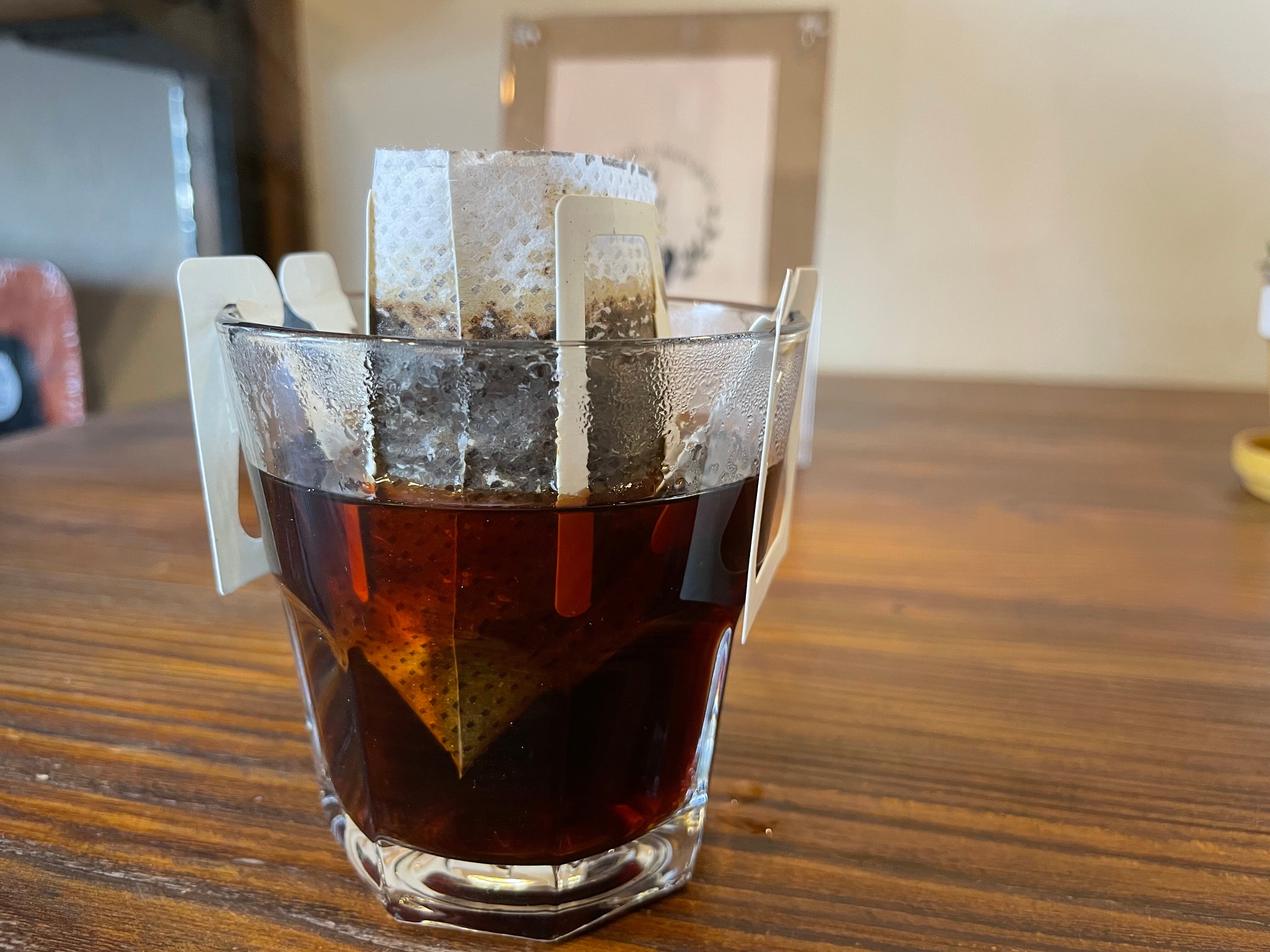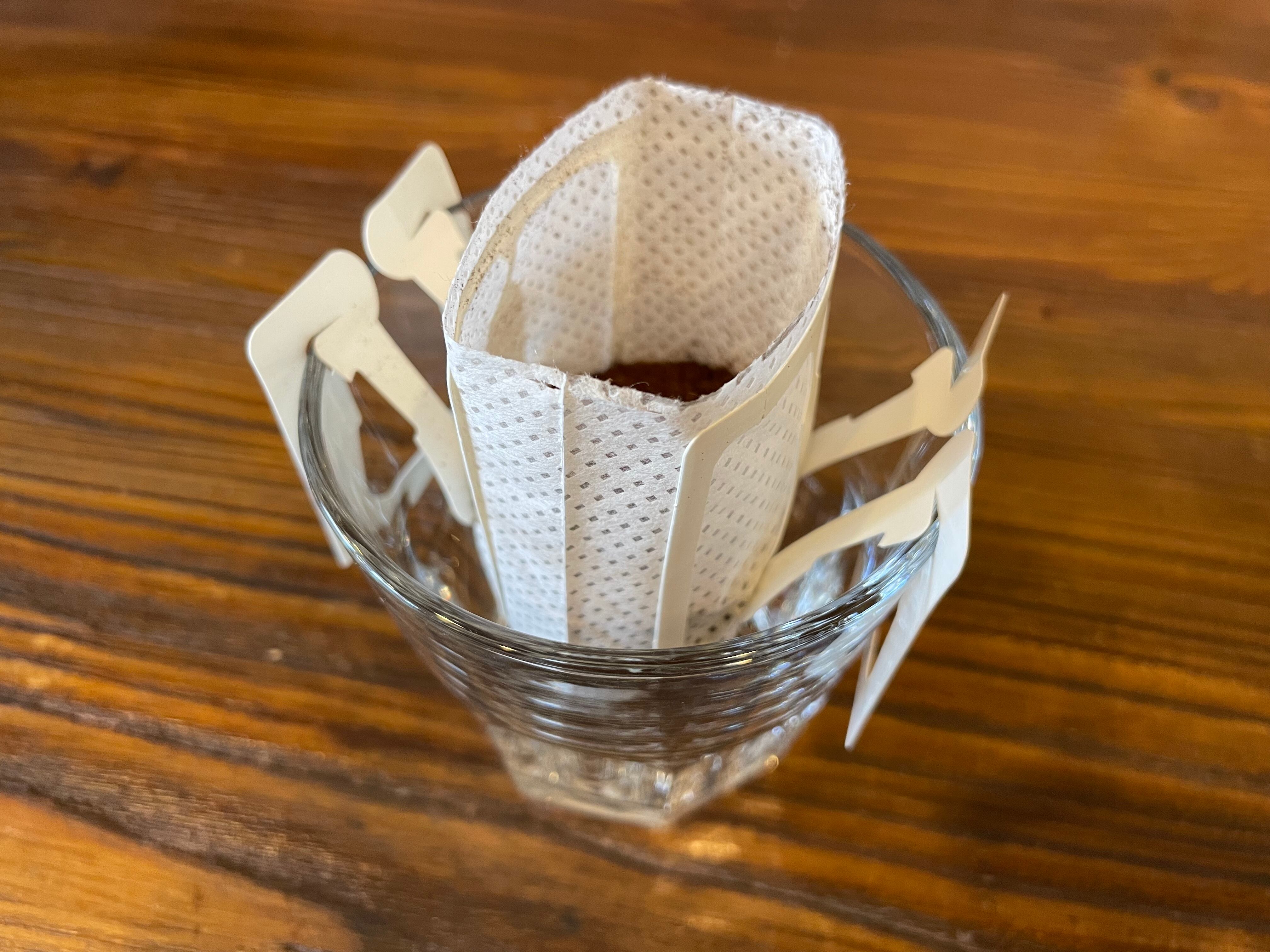 カップに掛けてお湯を注ぐだけでお手軽に家で香り高いコーヒーをお楽しみ頂けます。